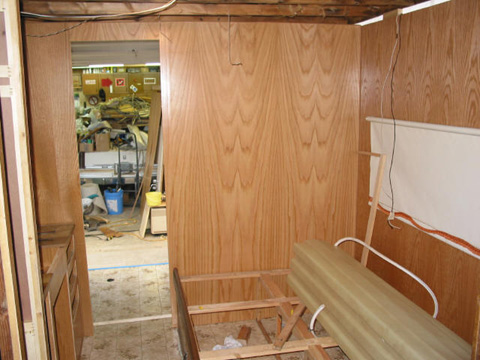 Bathroom storage cabinets partition: Partition done - time for gimp mold. All work, text, and photographs courtesy of Bob Hanover