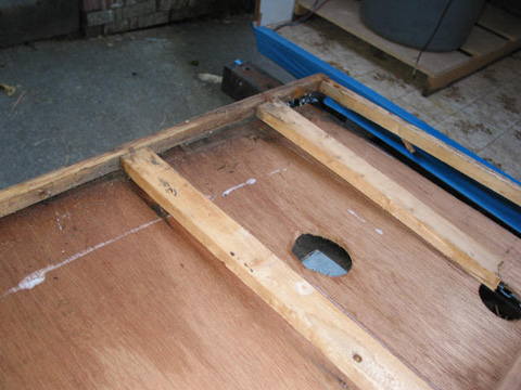 Bathroom storage cabinets partition: That's the bottom where the outside storage bay is. Its all rotten too. Remember the pics of the back end, open and rotten? This partition goes there.