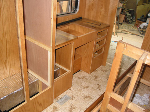 | This page I wrote for my old rv website RVforSaleGuide.com before developing the Vanabode as the best travel vehicle for cheap easy long term road trips. People still like big rv's despite the much greater cost and trouble to operate, so here's what I know about them. Rebuild Travel Trailer page 9RV trailer repair project travel trailer, rebuild floors, wall rebuild, cabinets replaced