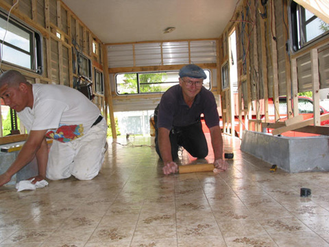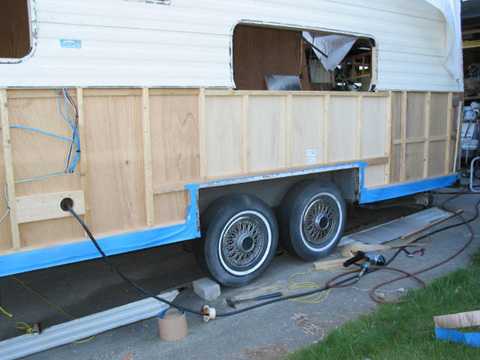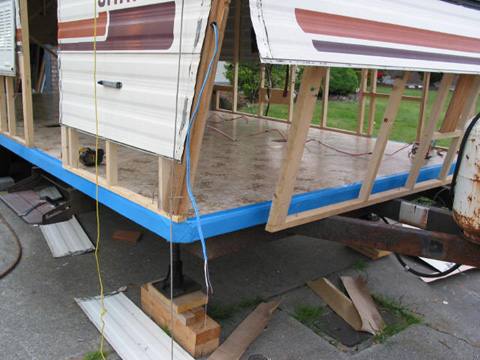 | This page I wrote for my old rv website RVforSaleGuide.com before developing the Vanabode as the best travel vehicle for cheap easy long term road trips. People still like big rv's despite the much greater cost and trouble to operate, so here's what I know about them. Rebuild Travel Trailer page 8RV trailer repair Rebuild project travel trailer, rebuild floors, wall rebuild, cabinets replaced