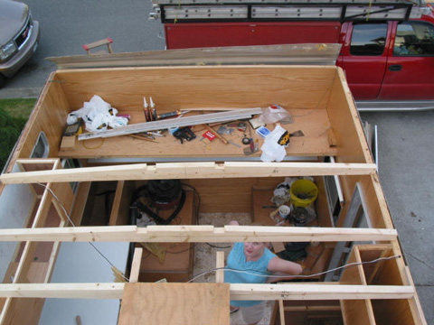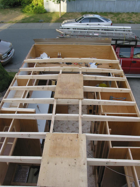 Out with the old: Old framing just before removal. An RV Rubber Roof can last for decades if installed and taken care of properly.