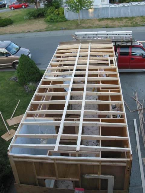 New roof framed: That was a good days work! All framed up & ready for ceiling panels.