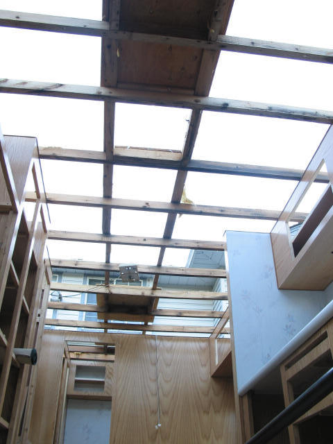 Roof framing: Closer view of the new rafters.