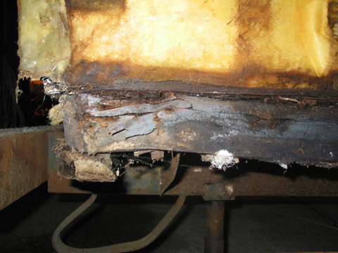 Corner of wall: I had to rebuild the entire wall and storage bay door area for about 4 feet from the back including the top by the roof.