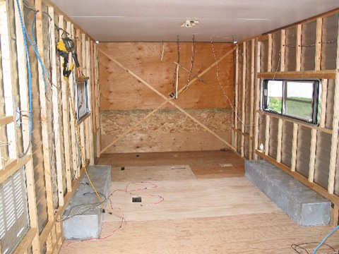 Front wall - inside view: There's how it looks from the inside - all new framing.
