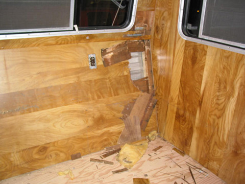 | This page I wrote for my old rv website RVforSaleGuide.com before developing the Vanabode as the best travel vehicle for cheap easy long term road trips. People still like big rv's despite the much greater cost and trouble to operate, so here's what I know about them. Travel Trailer Water Damage page 7RV trailer repair Rebuild project travel trailer, floor water damage, roof leaks, wall damage
