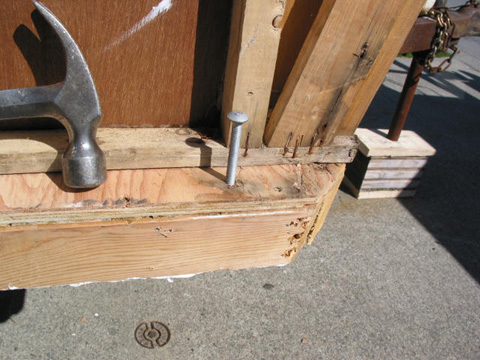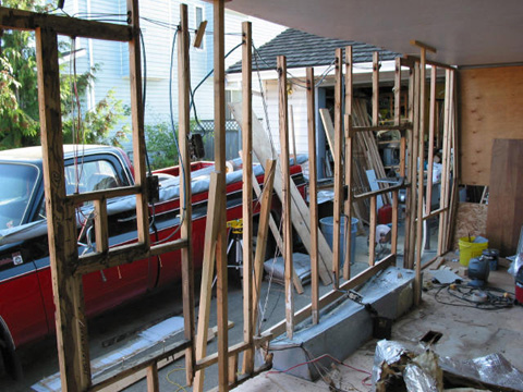 Side wall rebuild: Some of the new framework is leaning against the old wall.