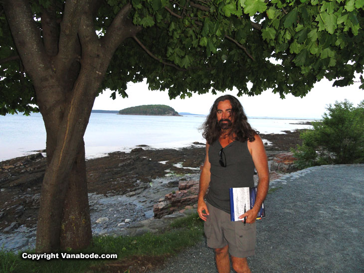 Above: The backside of Bar Harbor gives access to quiet beaches, fishing spots, and islands within swimming distance if you can take the cold water. I found this area 1,000 yards from the big downtown hotel perfect for a little writing...but then the Paparazzi showed up.