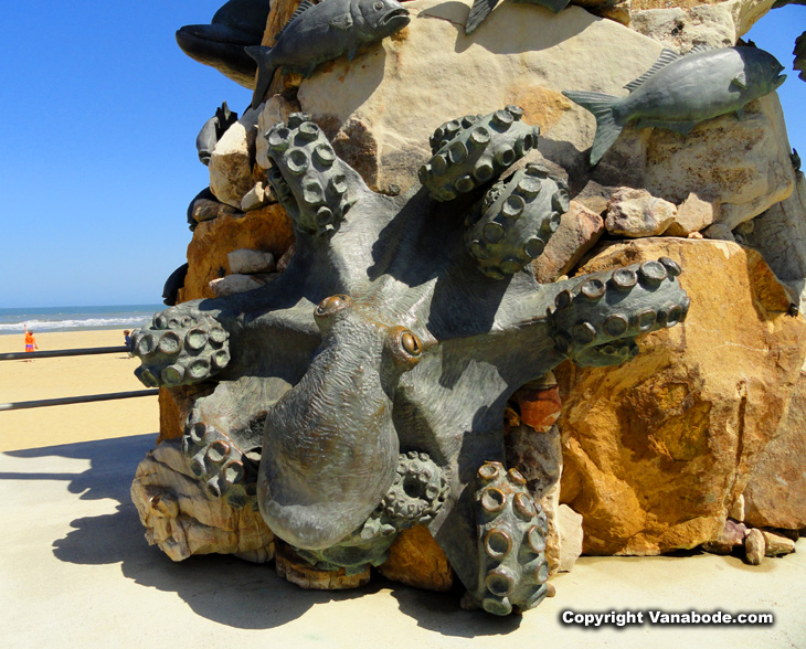 book from Amazon Virginia Beach presents a great boardwalk, king neptune sculpture, and concerts. it's a super fun place. It has a beautiful big sandy beach but no waves when we were there in the spring. In fact, there are many surf decals that mention that Virginia Beach has no waves. But I'm sure during hurricane season they get something they can ride. However, we still had a great time for the five days we were there. We stayed across the street from the ocean on Atlantic Avenue and 36th Street.
