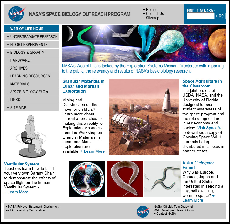NASA website I ran for them for 5 years at http://weboflife.nasa.gov
